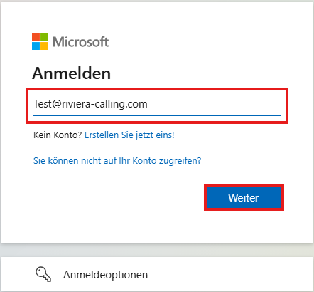 Trage deine eMail-Adresse ein und Klicken auf Weiter