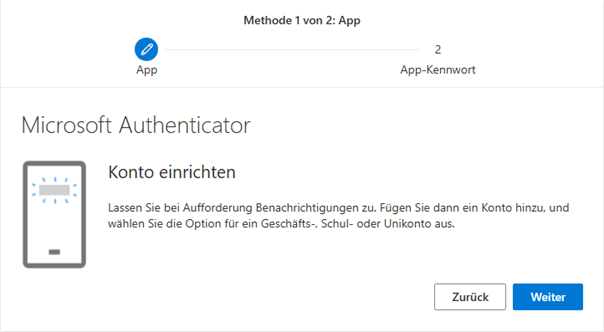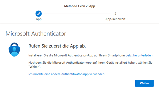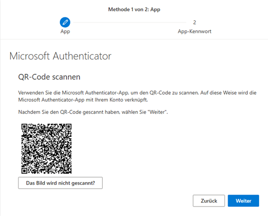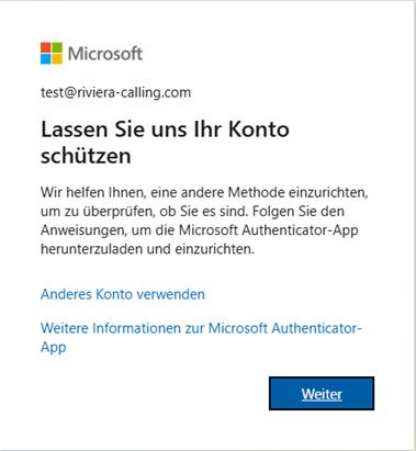 Du musst nun die Multi Faktor Authentifizierung einrichten folgen den Anweisungen auf dem Bildschirm: