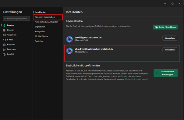Freigegebenes Postfach hinzufügen