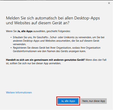 Klicke auf Ja, alle Apps