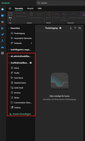 Das Freigegebene Postfach erscheint nun in der linken Spalte in Outlook New