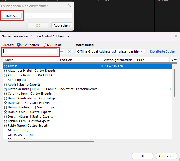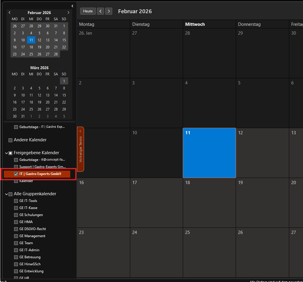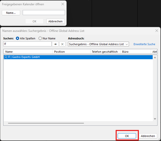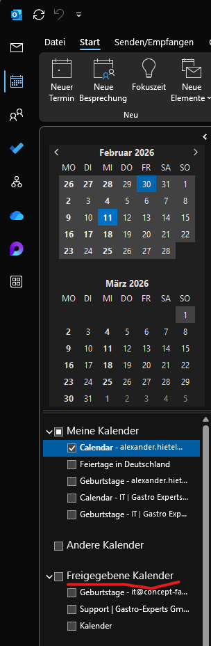 Freigegebenes Postfach Kalender hinzufügen