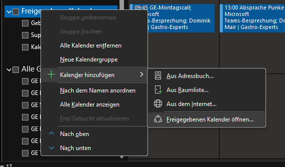 Rechte Maustaste Freigegebenen Kalender hinzufügen
