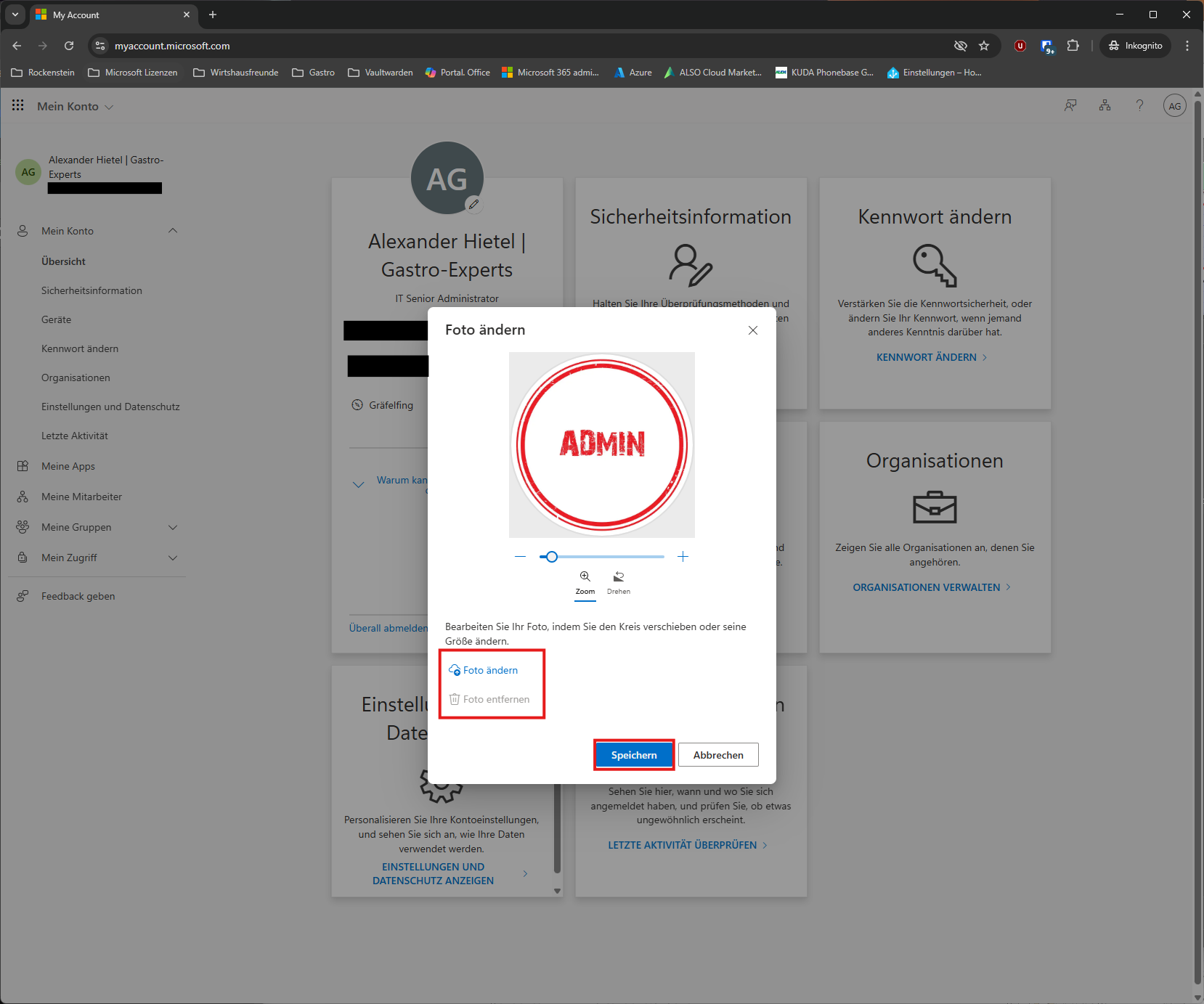 Log dich mit dem Account ein wo du das Profilbild ändern möchtest unter https://myaccount.microsoft.com/