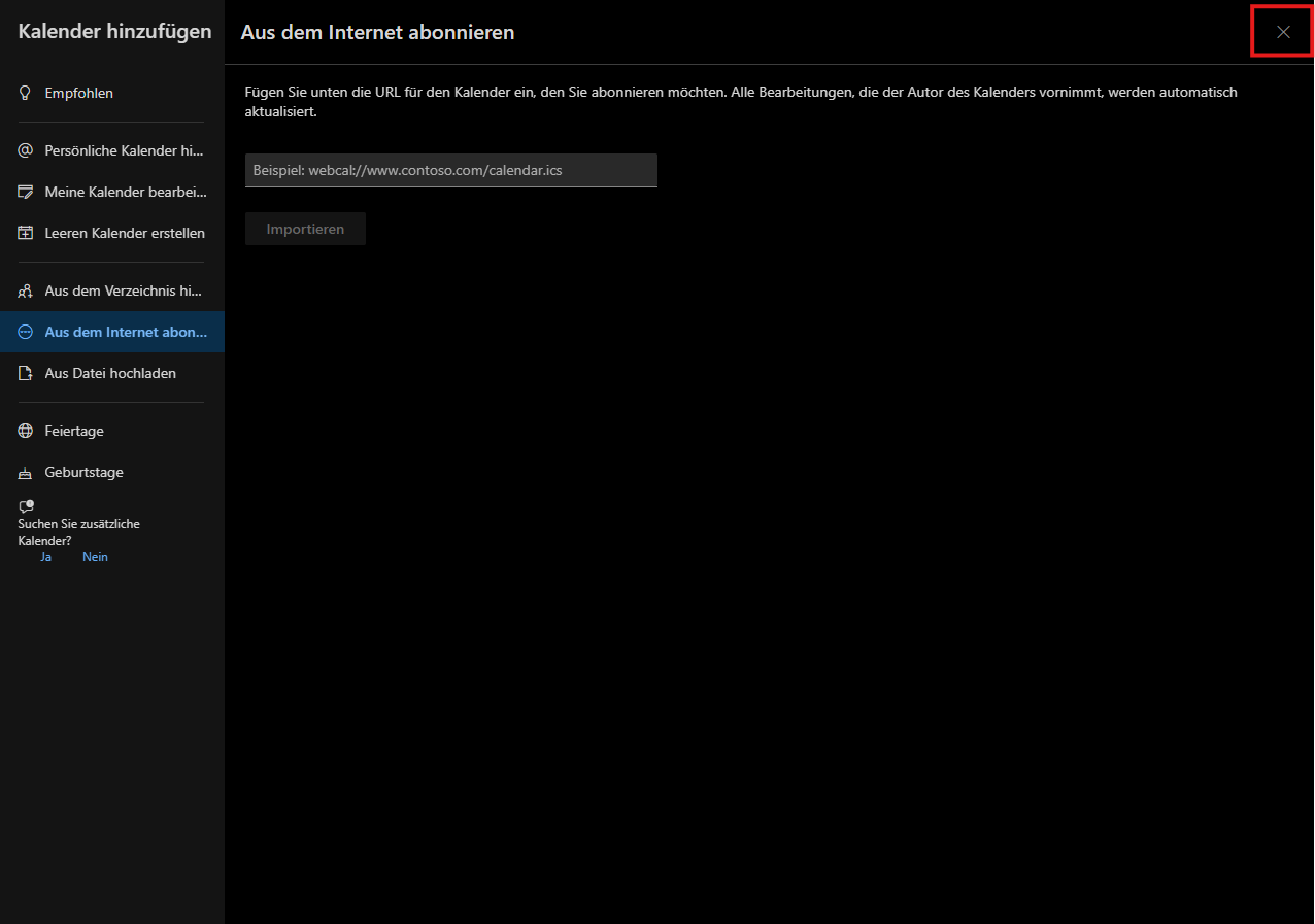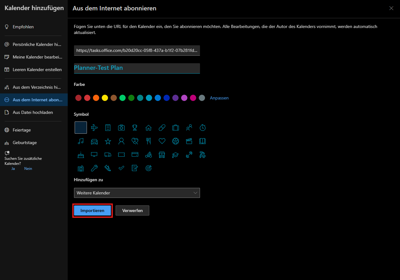 Klicke auf Hinzufügen eines Plans zum Outlook-Kalender mit einem iCalendar-Feed