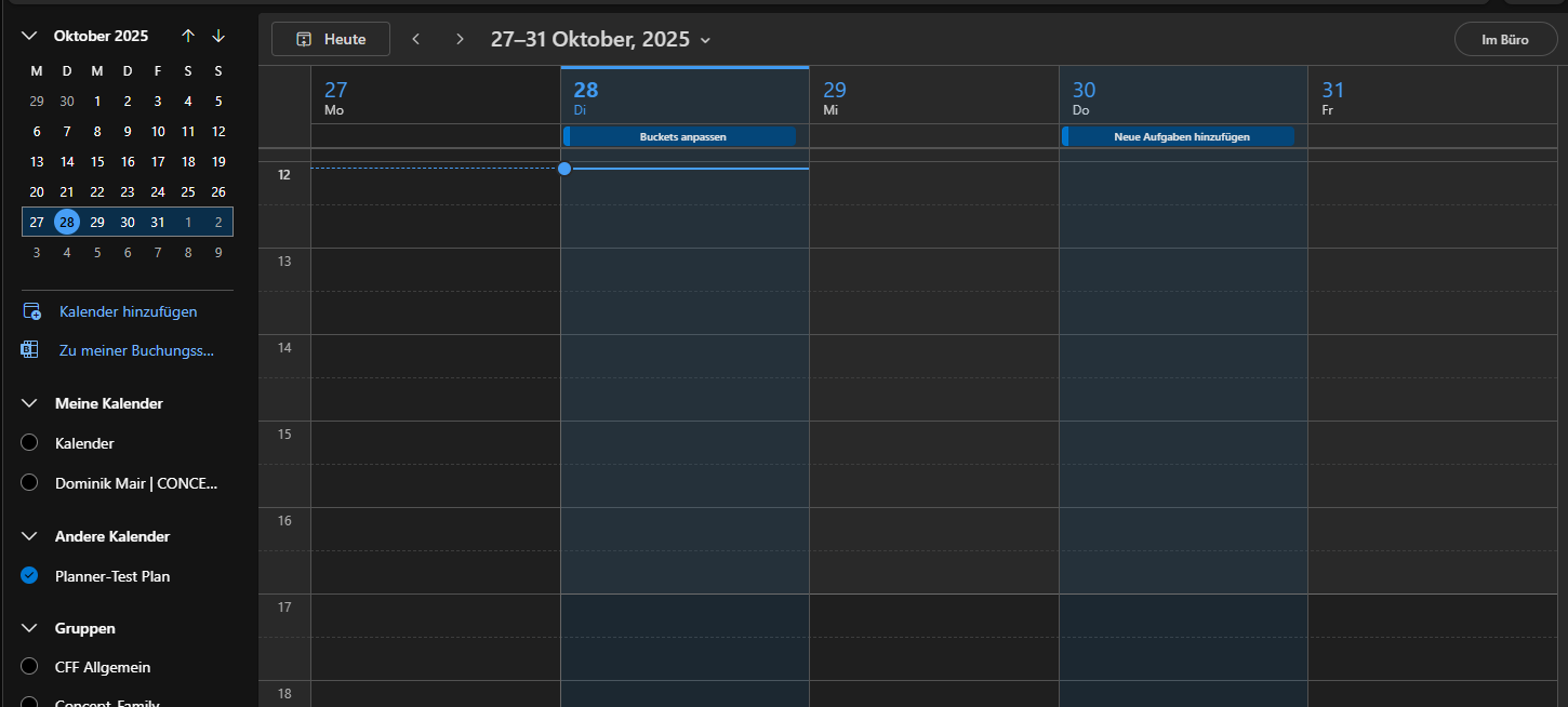 Anzeigen Ihres Planner-Zeitplans im Outlook-Kalender